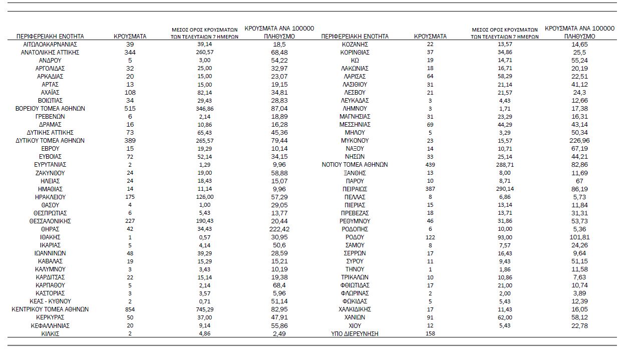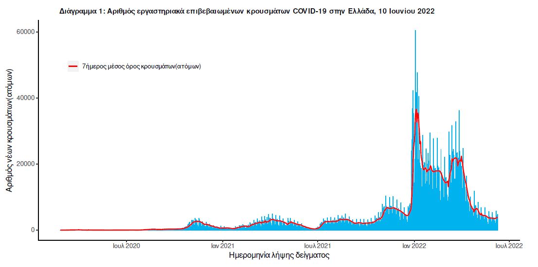 Αναλυτικά, τα νέα εργαστηριακά επιβεβαιωμένα κρούσματα της νόσου(άτομα) που καταγράφηκαν τις τελευταίες 24 ώρες ήταν 4.493. Ο συνολικός αριθμός των ατόμων που νόσησαν ανέρχεται σε 3.492.268 (ημερήσια μεταβολή +0.1%), εκ των οποίων 48.8% άνδρες.