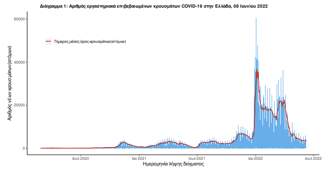 Τα νέα εργαστηριακά επιβεβαιωμένα κρούσματα της νόσου(άτομα) που καταγράφηκαν τις τελευταίες 24 ώρες ήταν 4.496. Ο συνολικός αριθμός των ατόμων που νόσησαν ανέρχεται σε 3.483.275 (ημερήσια μεταβολή +0.1%), εκ των οποίων 48.8% άνδρες. Ο αριθμός πιθανών νέων επαναλοιμώξεων που καταγράφηκαν τις τελευταίες 24 ώρες ήταν 561 ενώ από την αρχή της πανδημίας SARS-CoV-2 ο συνολικός αριθμός εκτιμάται σε 139.601(3.9% του συνολικού αριθμού των θετικών αποτελεσμάτων).