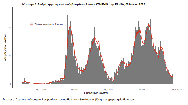 Οι νέοι θάνατοι ασθενών με COVID-19 είναι 13, ενώ από την έναρξη της επιδημίας έχουν καταγραφεί συνολικά 29.966 θάνατοι. Το 95.6% είχε υποκείμενο νόσημα ή/και ηλικία 70 ετών και άνω.